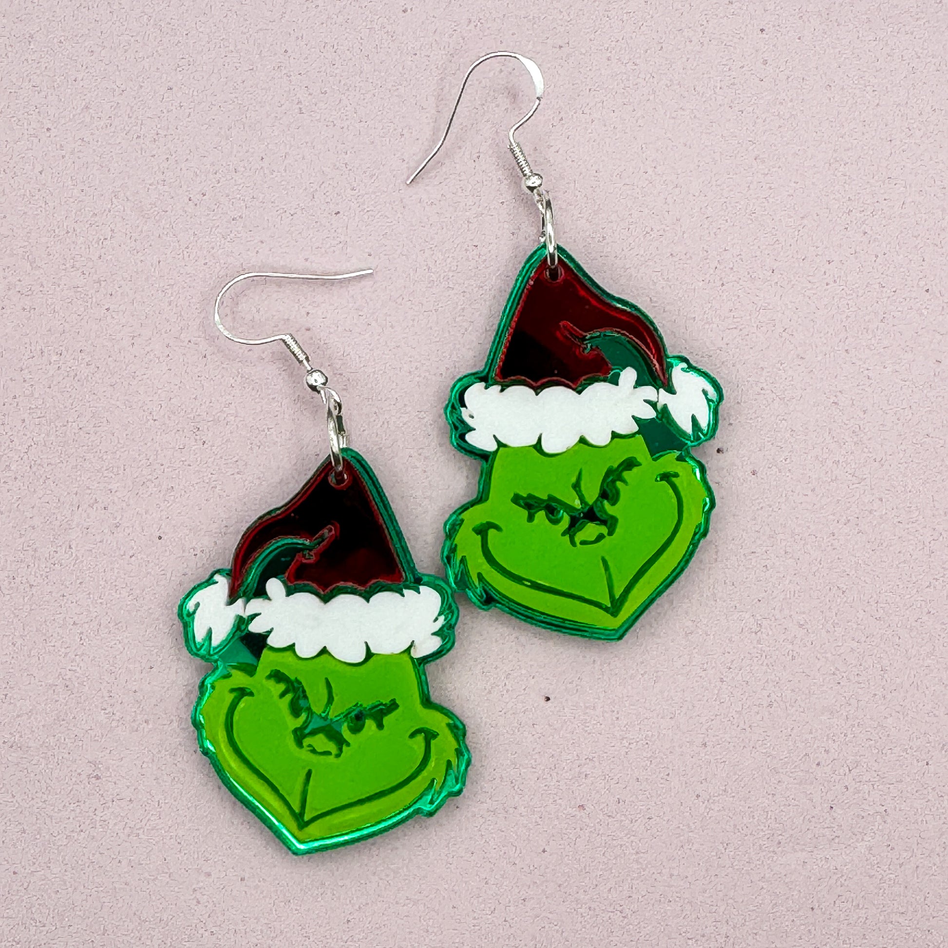 Layered Grinch earrings.